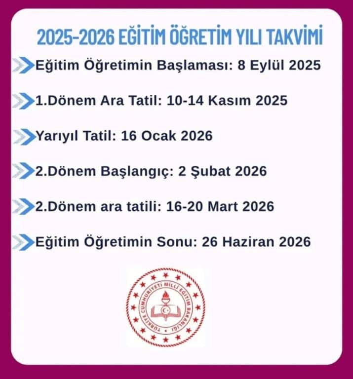2025-2026 EĞİTİM ÖĞRETİM YILI TAKVİMİ